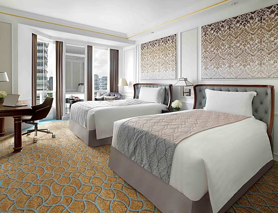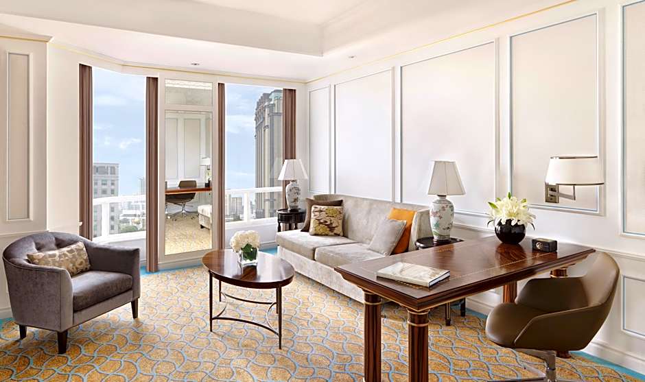 This larger air-conditioned grand deluxe king room is decorated in neutral tones and silk paneling. The seating area is fitted with a flat-screen satellite TV and a mini-bar. The private bathroom includes shower facilities, a hairdryer and free toiletries.